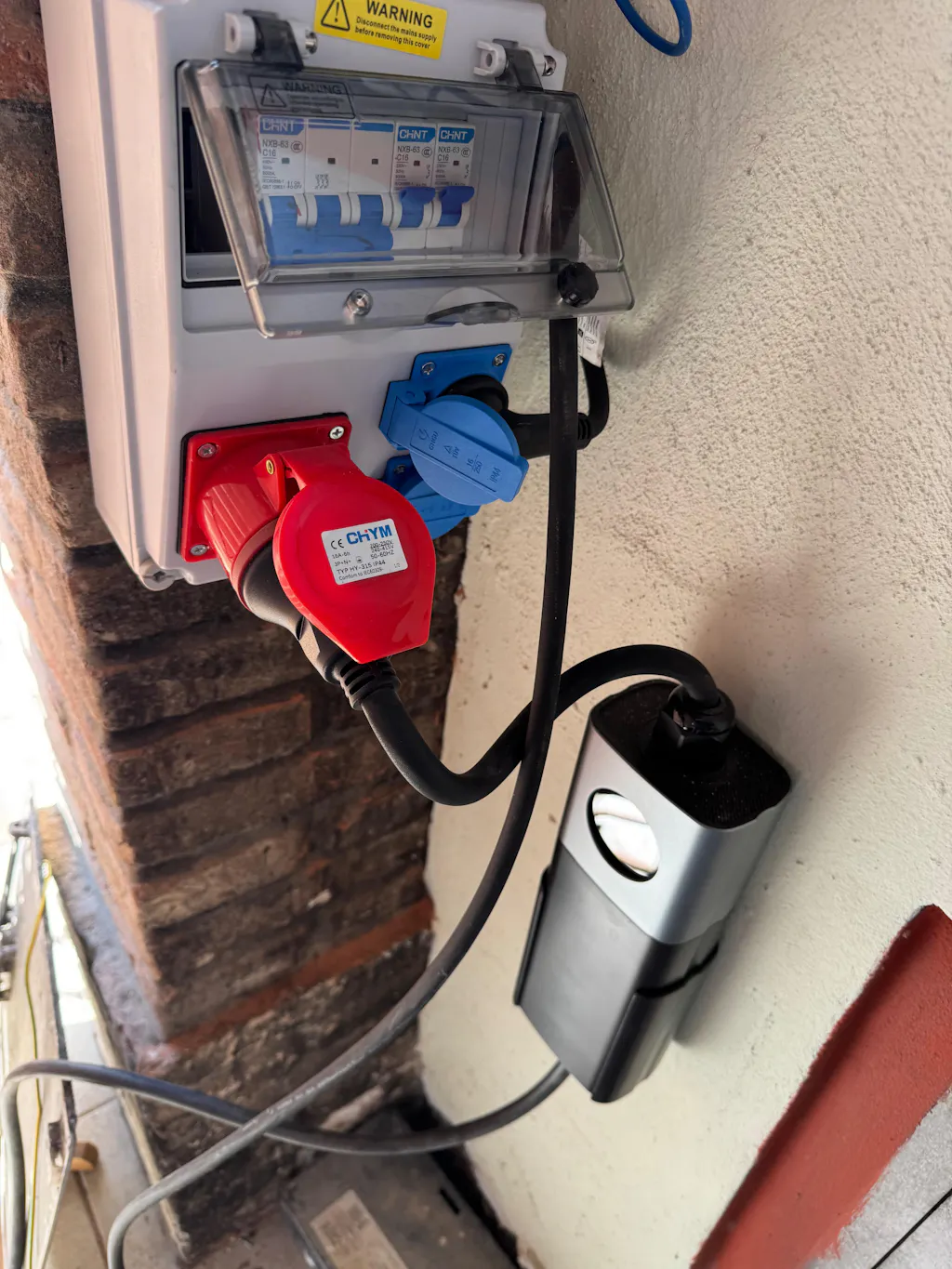 Se sei in viaggio o la tua azienda non ha una presa CEE16A trifase, non devi preoccuparti. Con un adattatore da CEE16A a Schuko puoi facilmente utilizzare il caricabatterie in una presa domestica (questo adattatore deve essere acquistato separatamente).